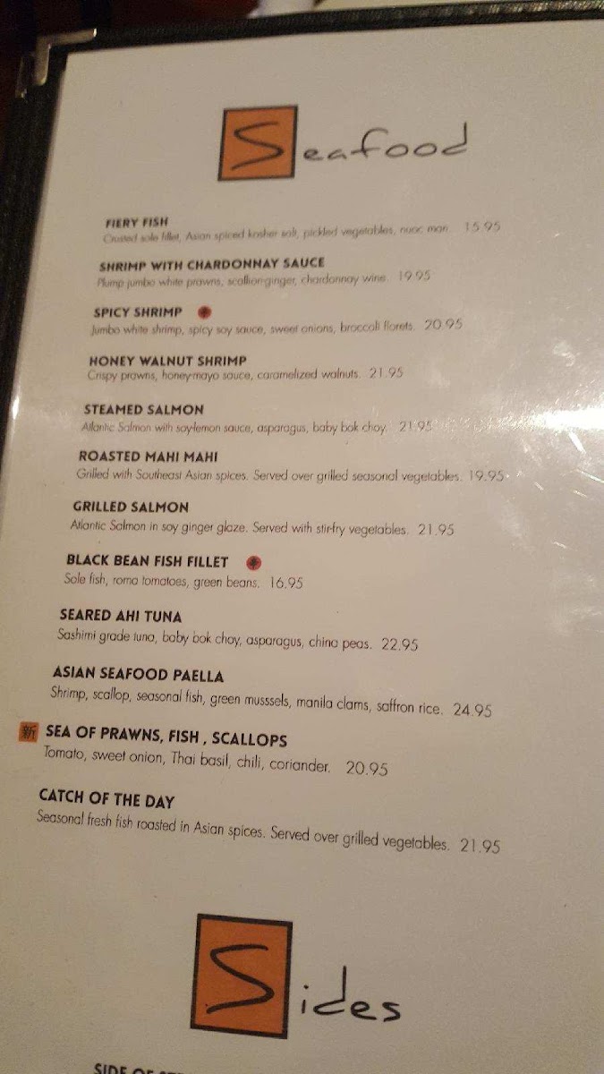 Sashimi grade tuna, baby bok choy, asparagus, china peas. Served with steamed jasmine or brown rice. Sides: Jasmine Rice, Brown Rice, Side of Fried Rice (2.50), Side of Chow Mein (2.50), Side of Garlic Noodles (2.50), Side of Vegetables (2.50)